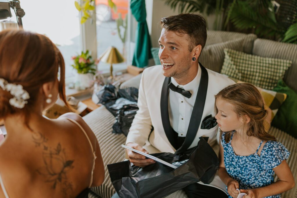 En l’ouvrant, Vincent est resté sans voix. Le sourire aux lèvres, il a lancé à Noémie : « Wow… tu es magnifique mon amour! »