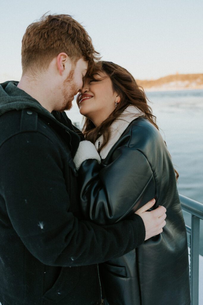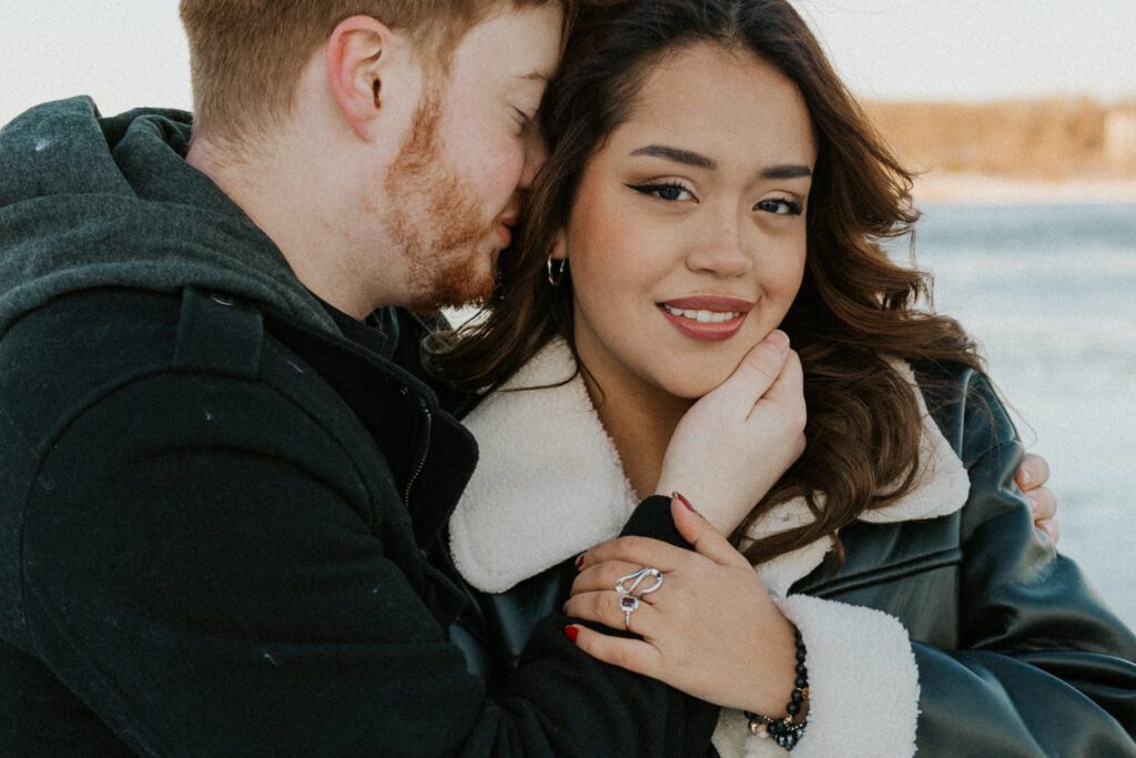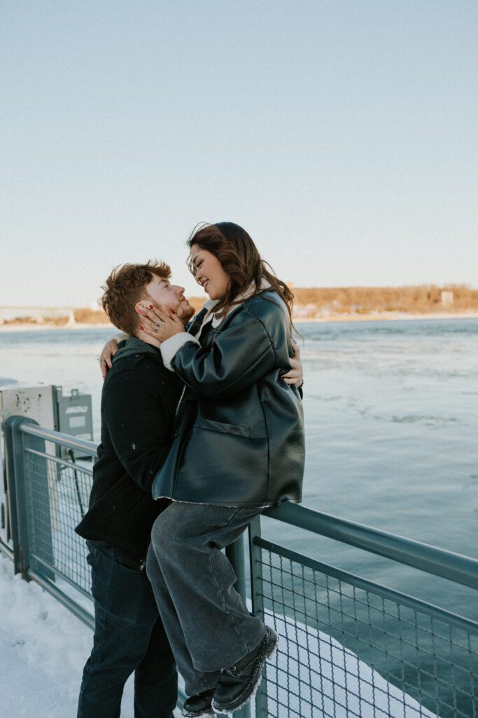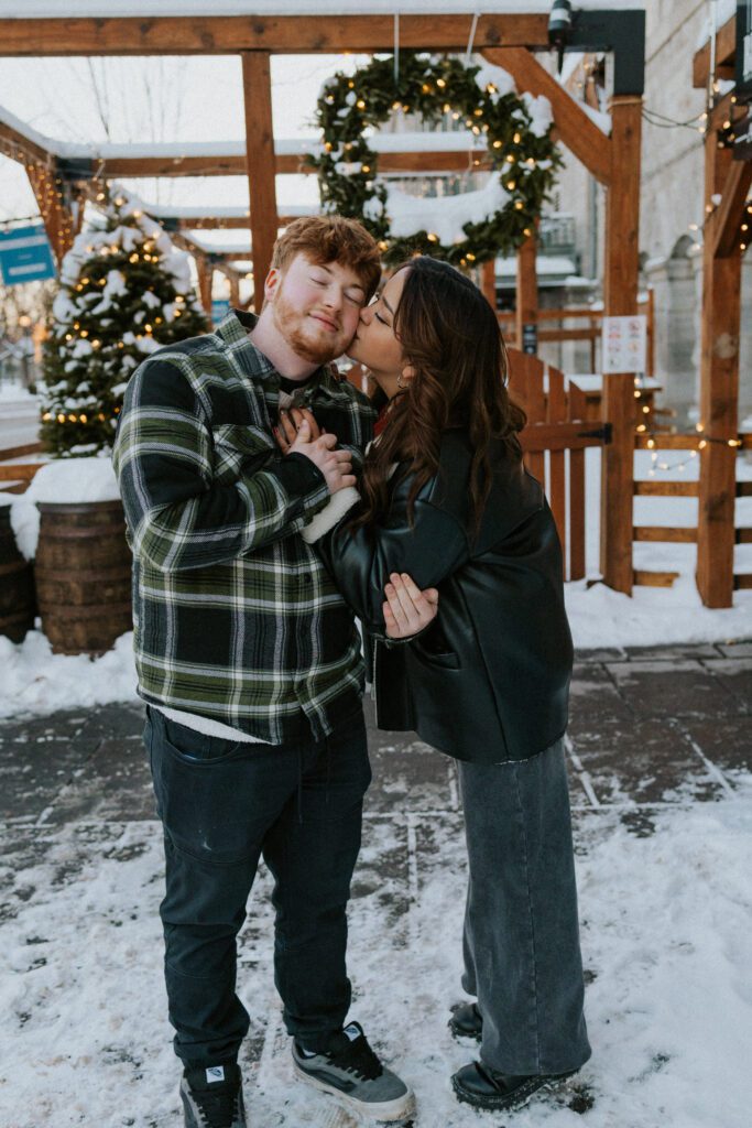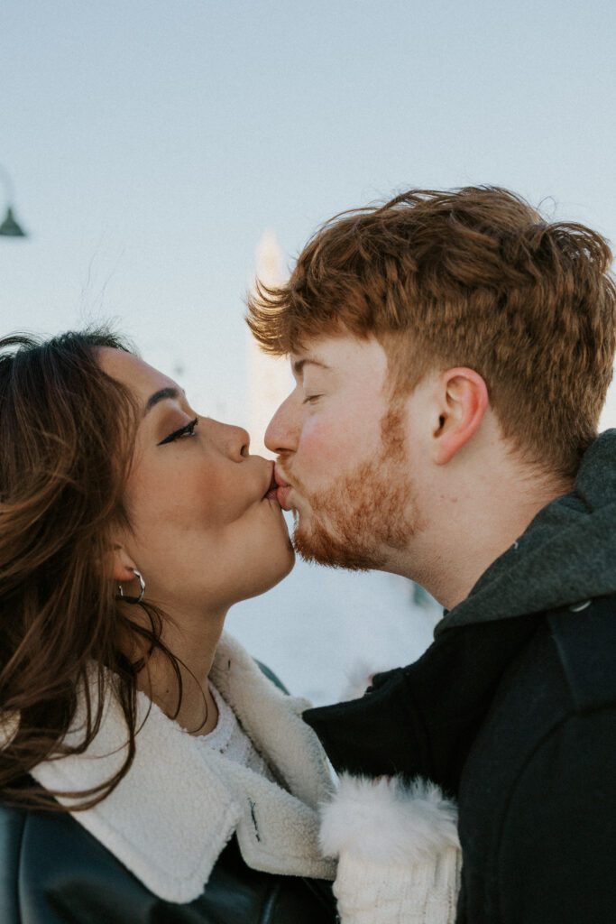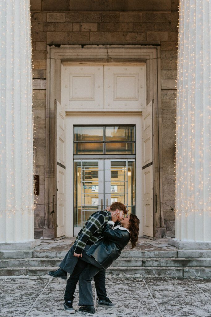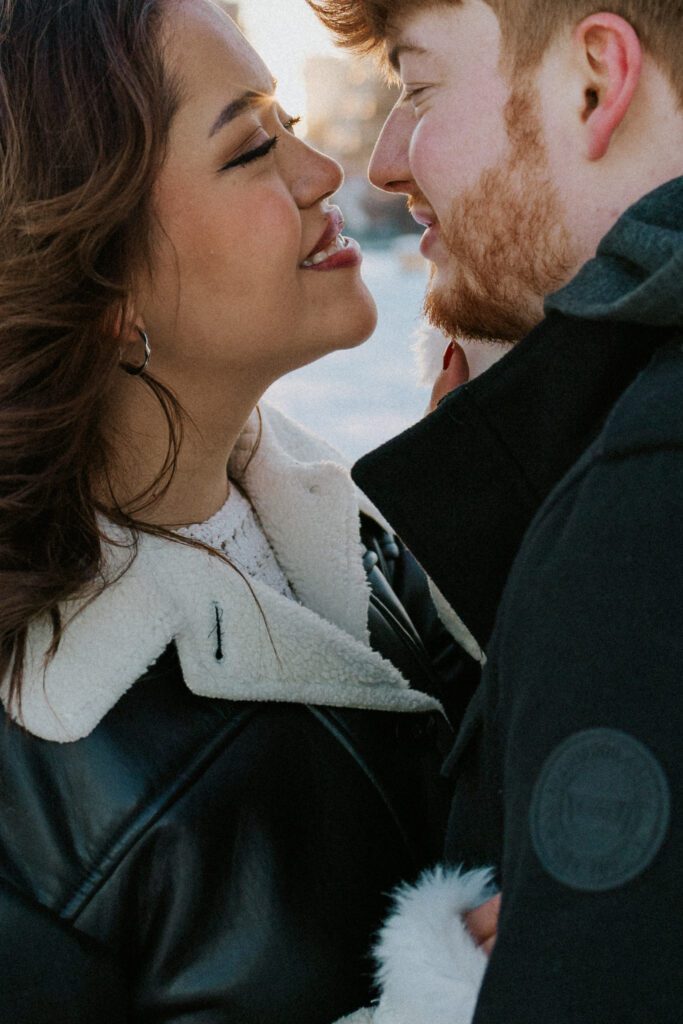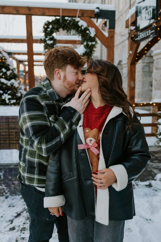 Winter engagement photos in Montreal feel intimate, elegant, and uniquely local. The snow reflects light beautifully, giving your skin a soft glow, while iconic Old Port landmarks add visual impact that instantly grounds your photos in place.