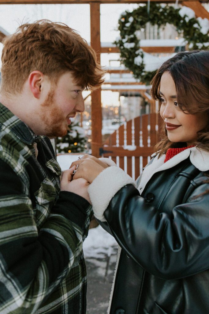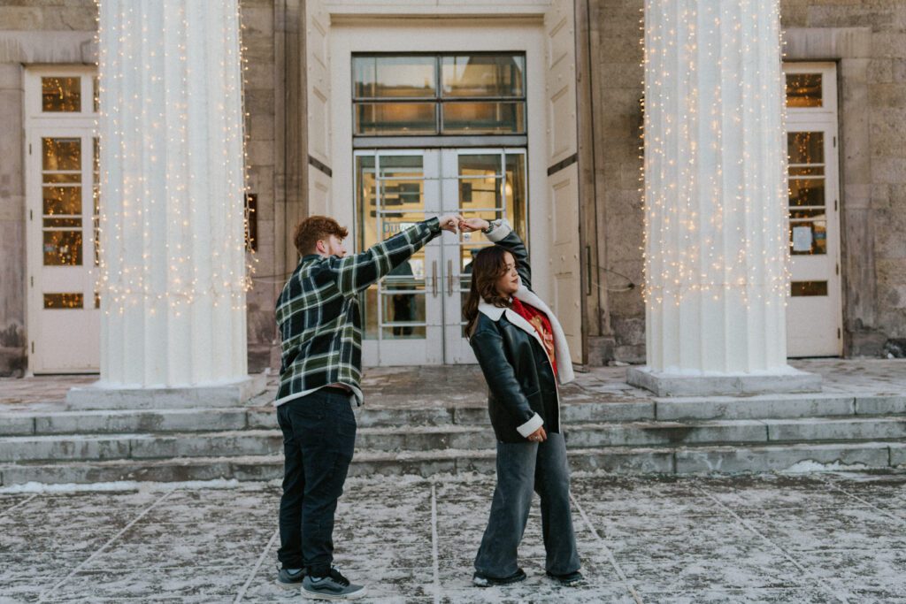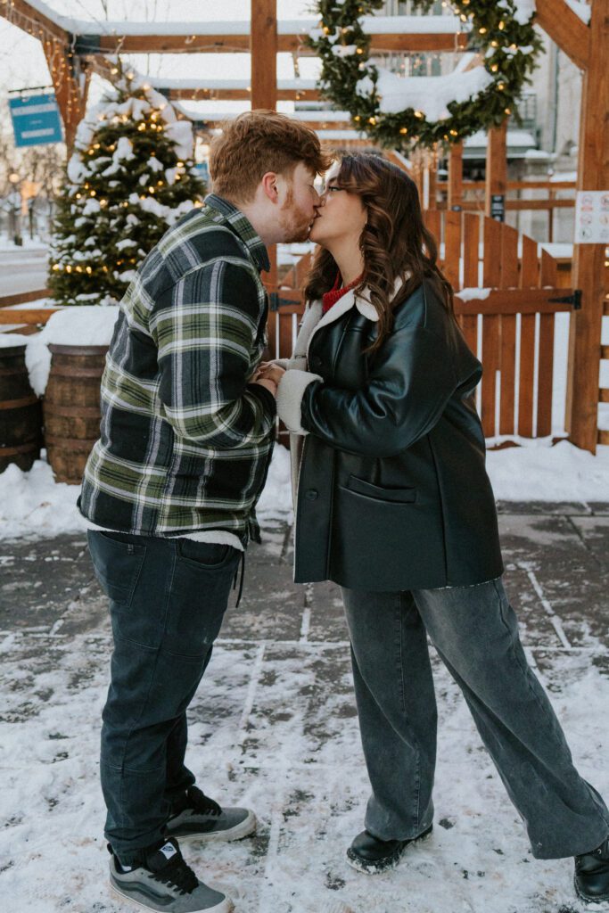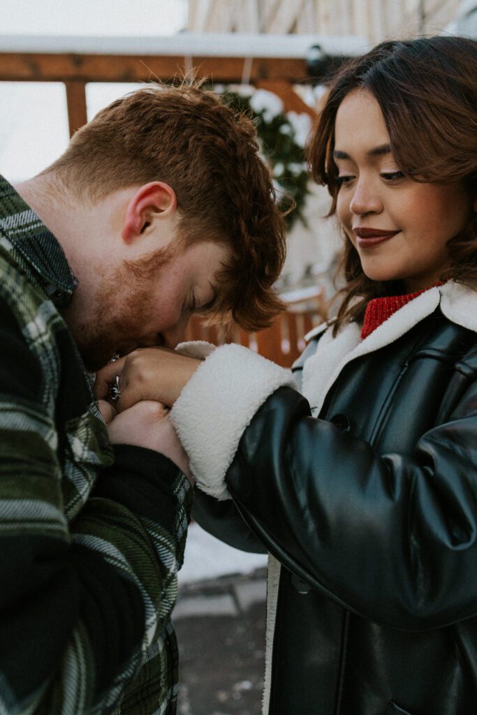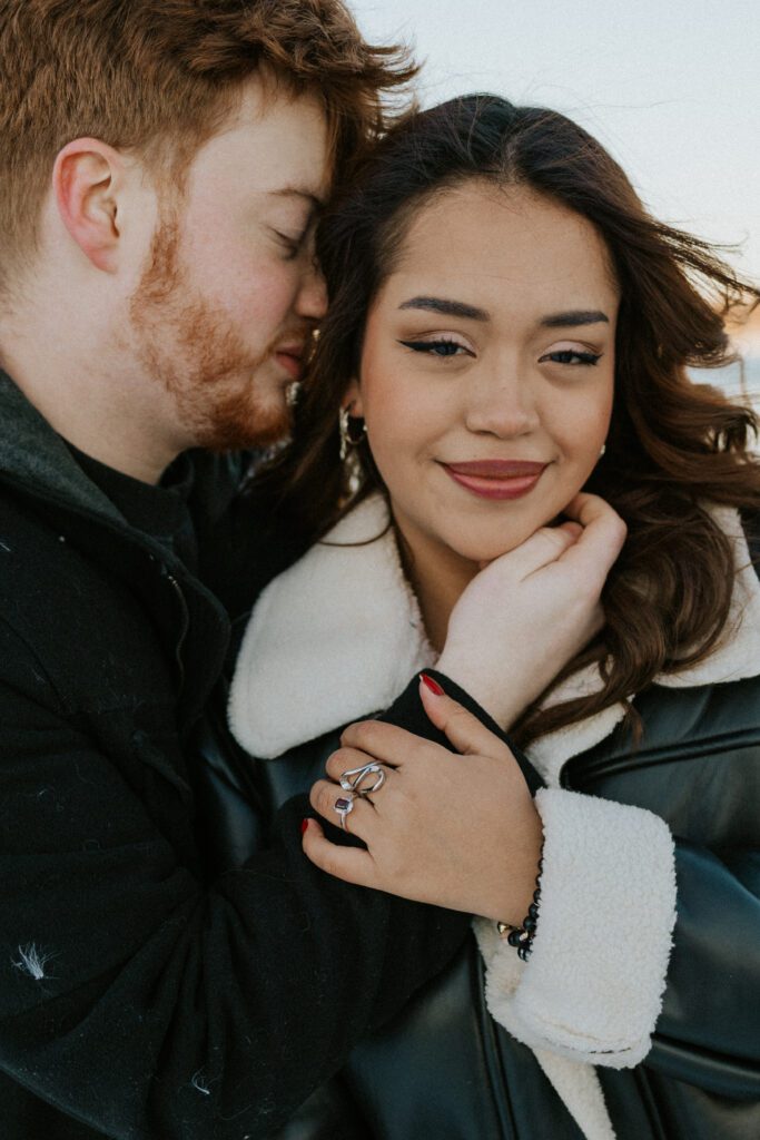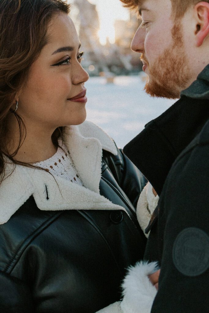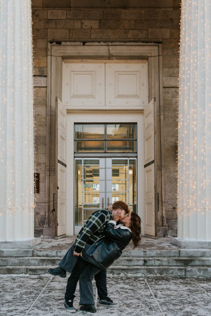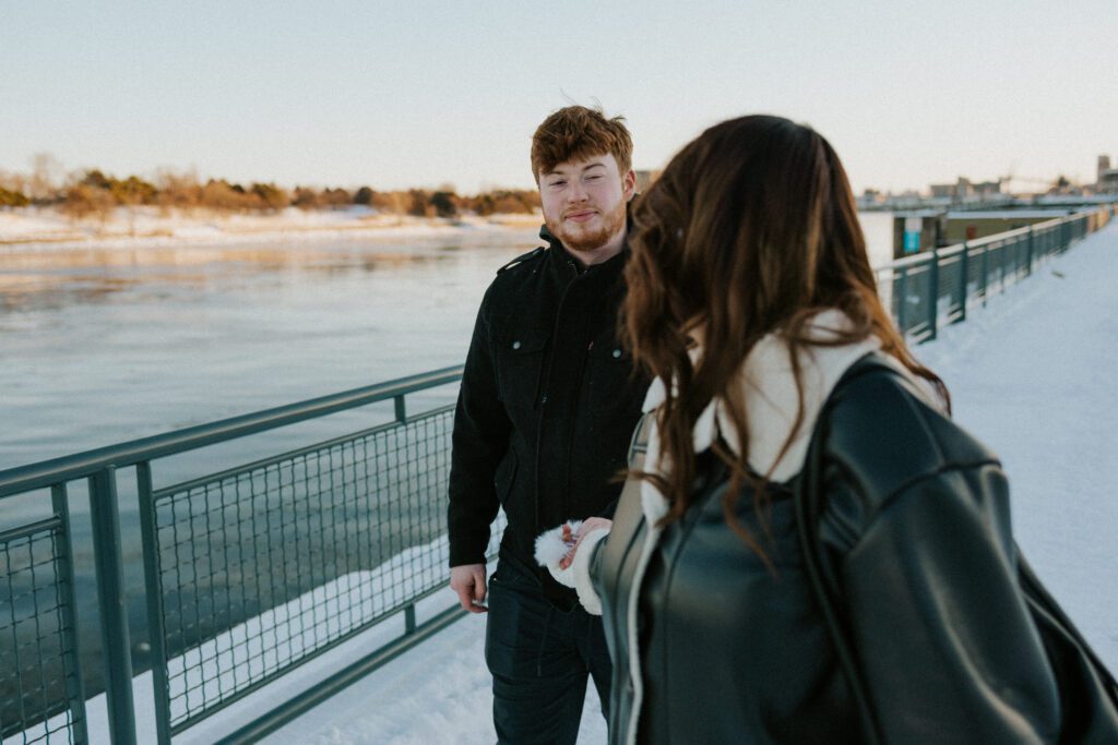 Winter engagement photos in Montreal feel intimate, elegant, and uniquely local. The snow reflects light beautifully, giving your skin a soft glow, while iconic Old Port landmarks add visual impact that instantly grounds your photos in place.