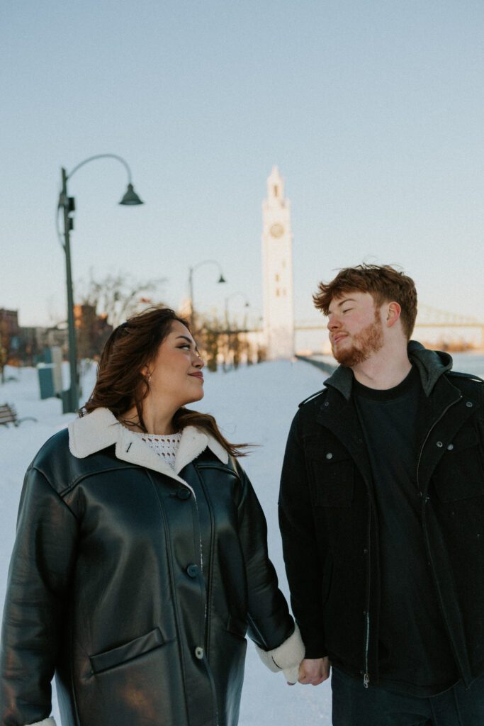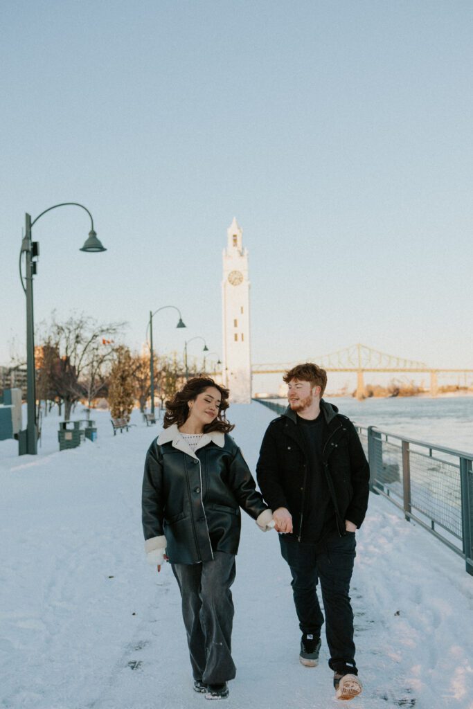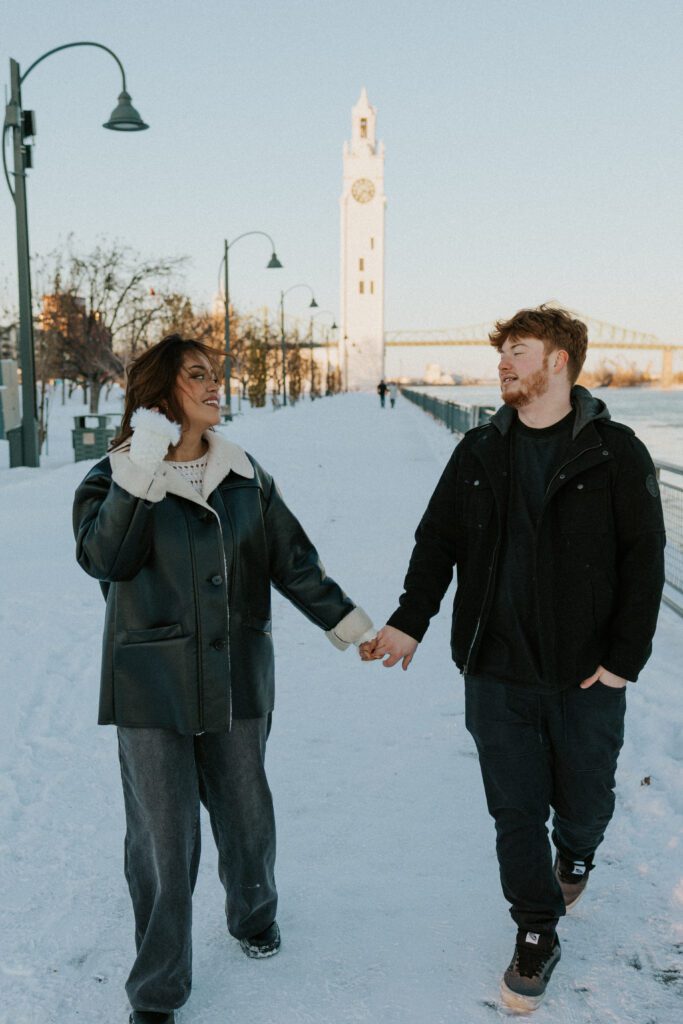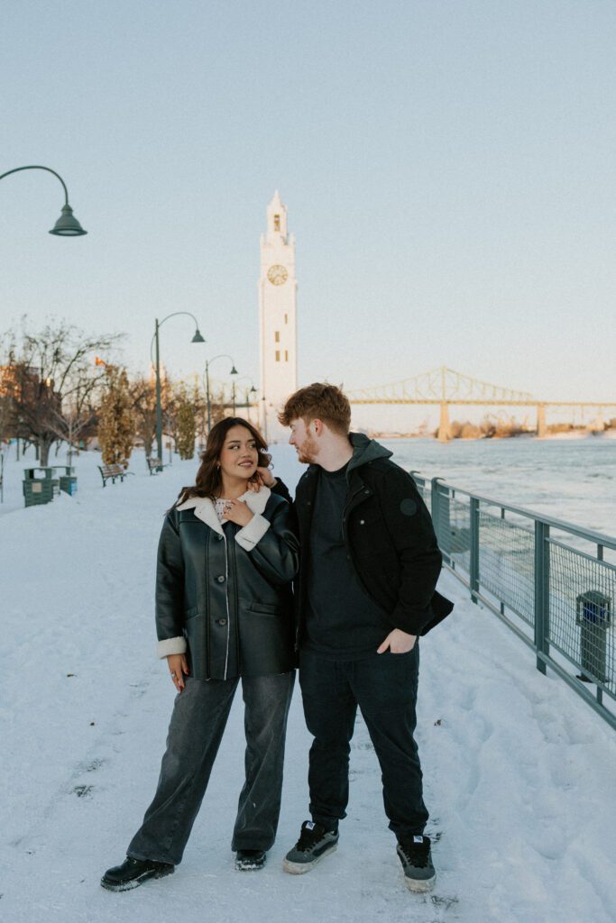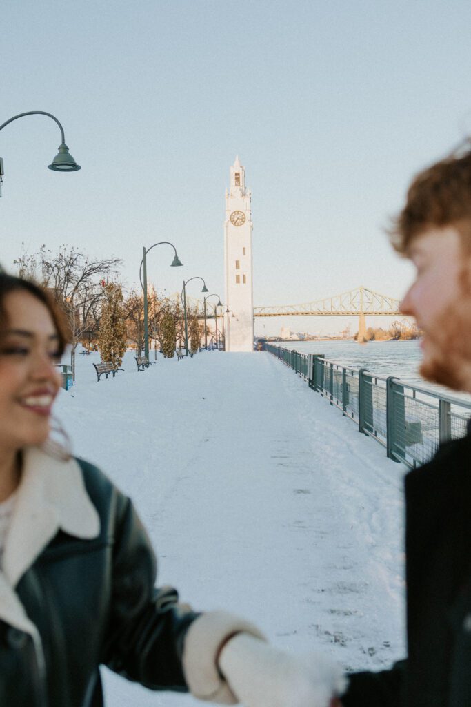 If you’re newly engaged and searching for engagement photos, engagement photographers, or wedding photographers in Montreal, consider embracing the season rather than waiting for summer. The Big Wheel, the Clock Tower, and the surrounding streets create a setting that is romantic, editorial, and unforgettable.