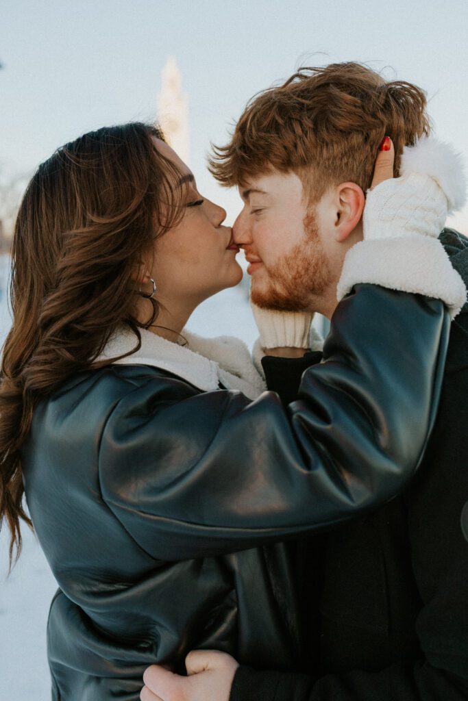Winter naturally brings couples closer — hands tucked into coat pockets, soft laughter between kisses, breath visible in the cold air. As an engagement photographer, I gently guide you while allowing space for real connection. The goal is not stiff posing, but movement and emotion.