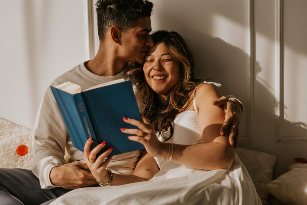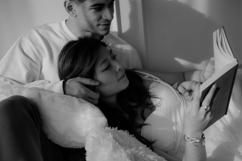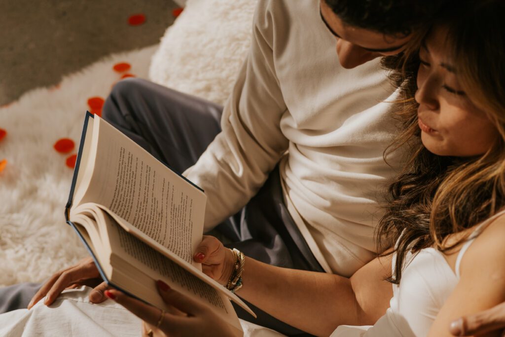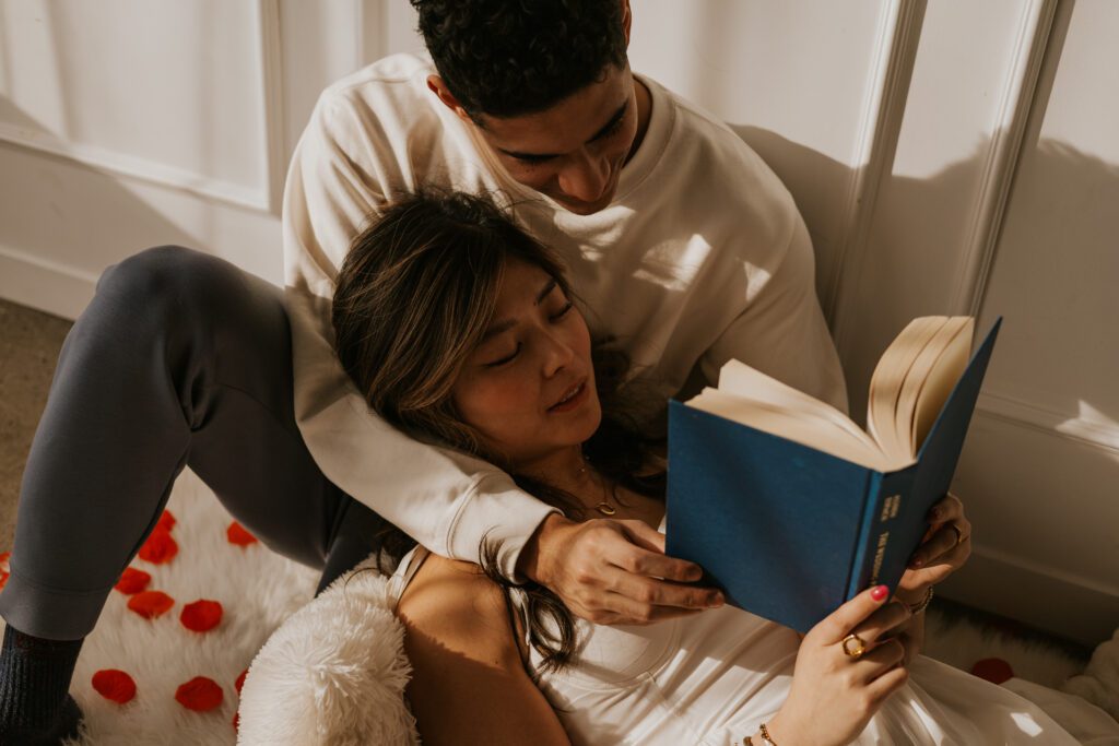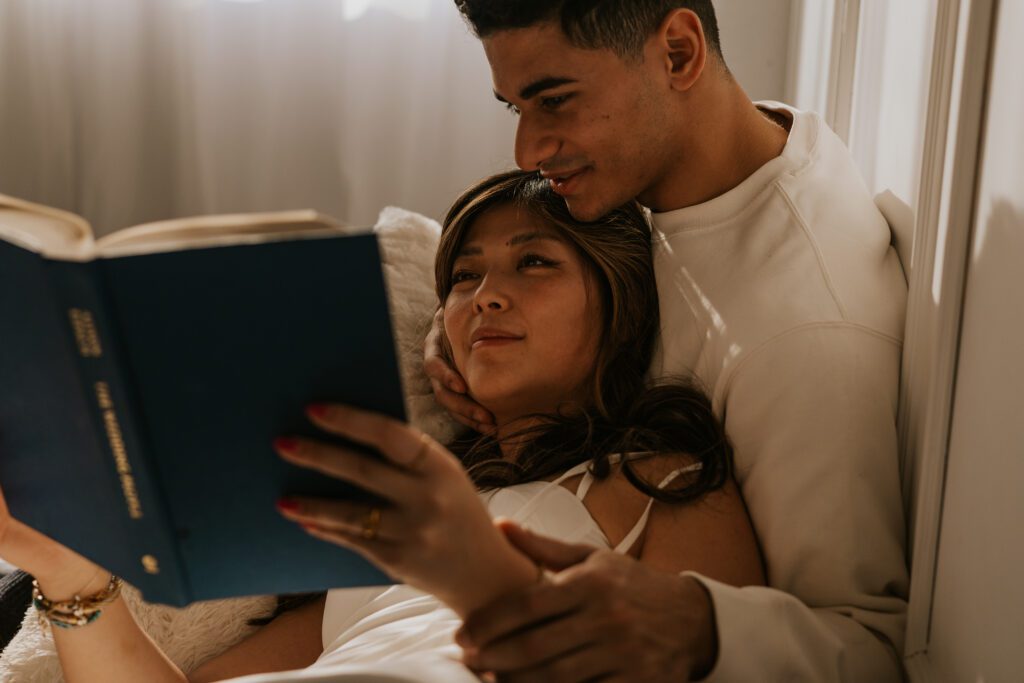 The book created soft, intimate moments — sitting close together, reading side by side, subtle touches while turning pages. It added calmness and closeness.