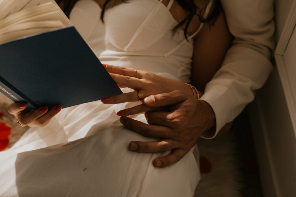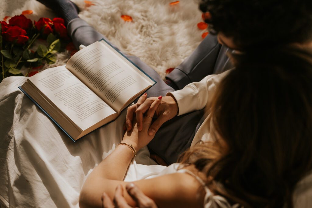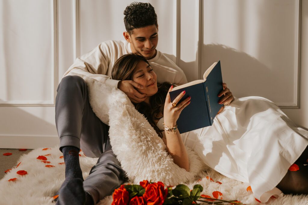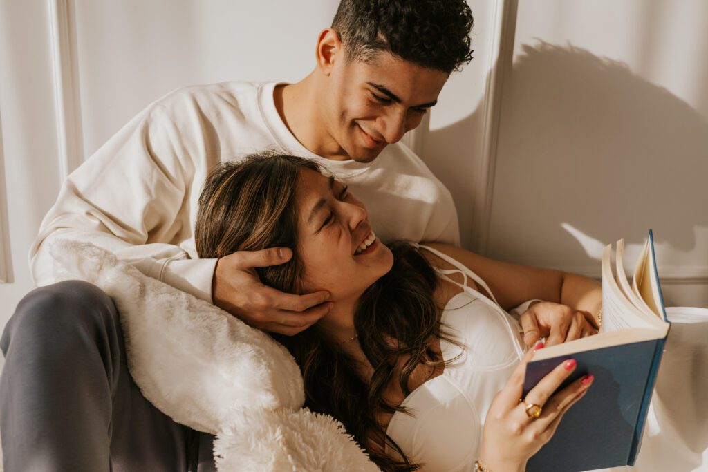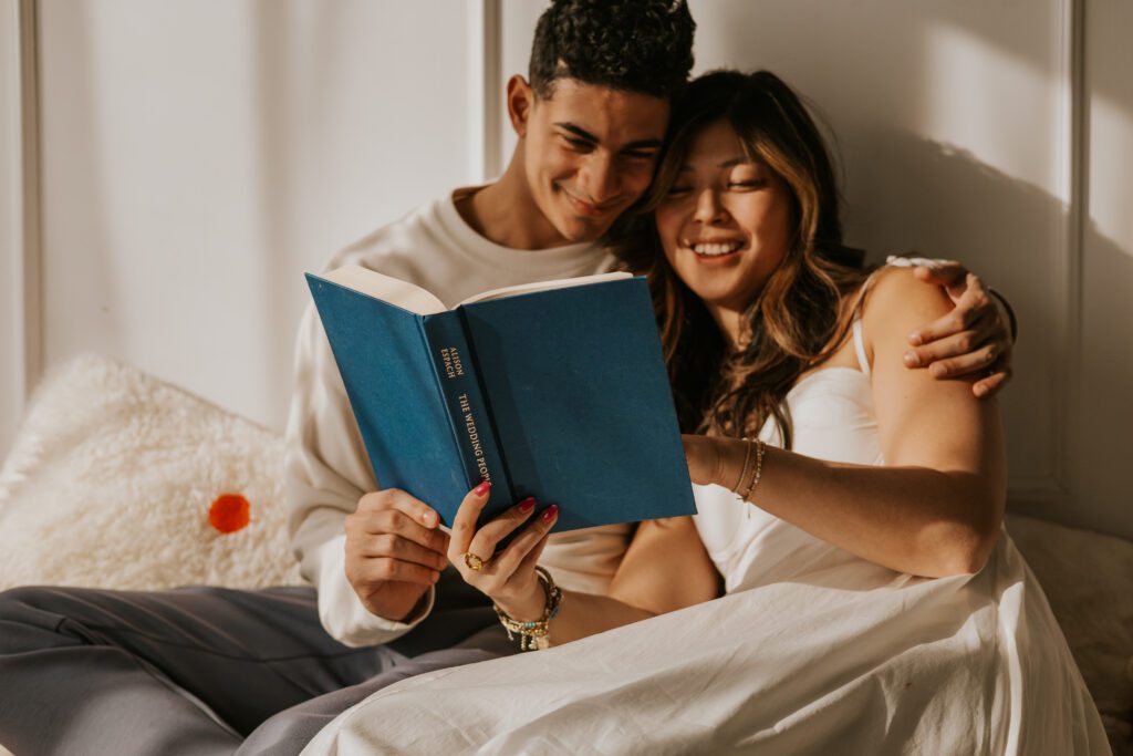 The book created soft, intimate moments — sitting close together, reading side by side, subtle touches while turning pages. It added calmness and closeness.